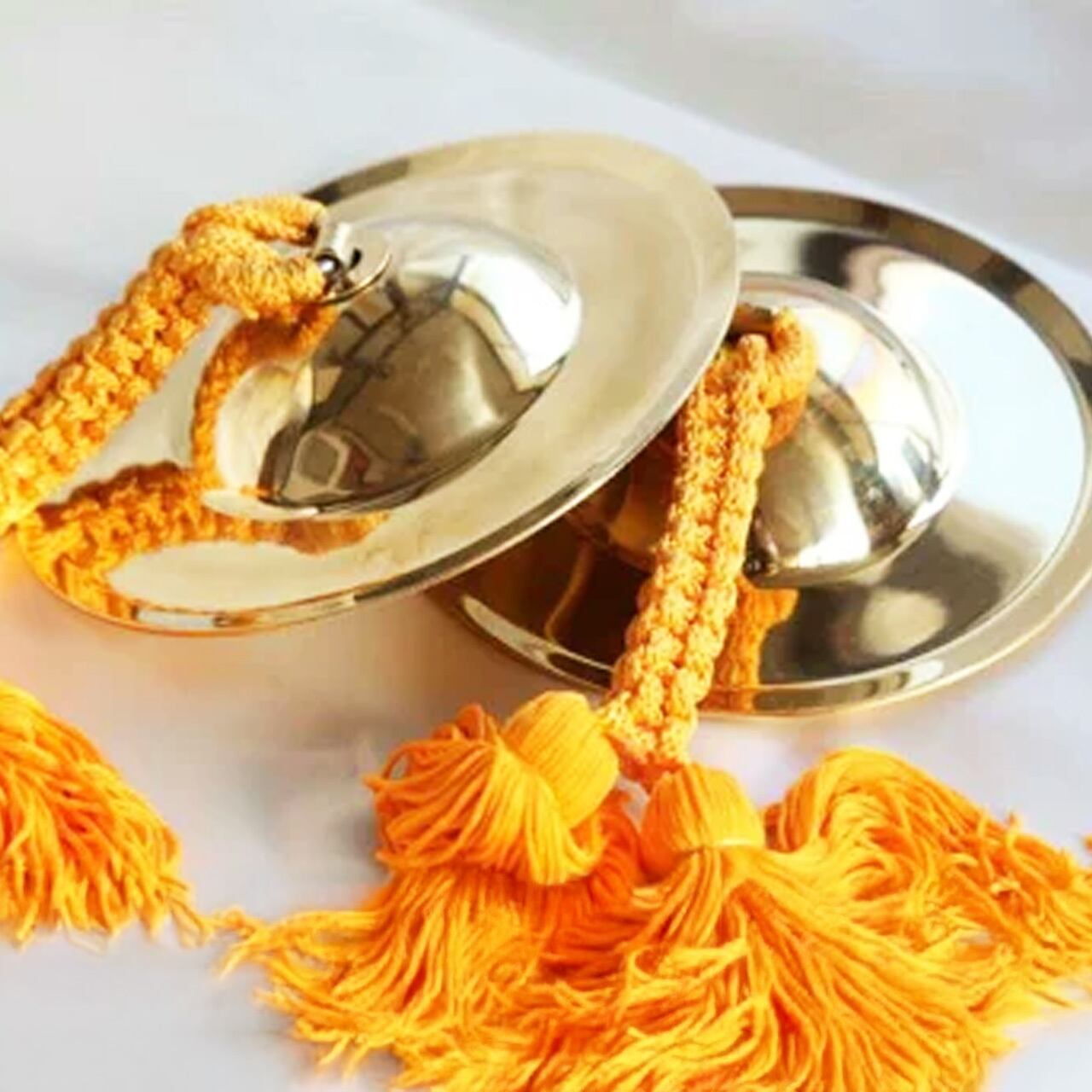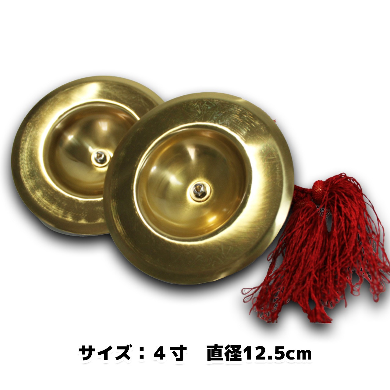 お祭りの雰囲気をより一層盛り上げるアイテム、それが【手振鉦(チャッパ)手振鐘4寸赤房/金房付き】です。シンバルのような形状を持つこの楽器は、雅楽や田楽、歌舞伎など日本の伝統音楽において欠かせない存在です。赤房と金房の組み合わせが、お祭りの賑やかな雰囲気を引き立てます。
